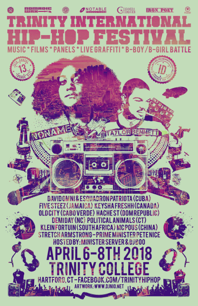 The Festival was founded with the goal to connect Hartford and Trinity through music and promote social change through the genre of hip hop. The Festival features lectures and panels that present a wide variety of educational topics related to hip hop, along with dance workshops, and graffiti showcases. Performances by both local and international artists, as well as all-night dance battles and competitions, such as “Trinity 'til Infinity,” are also featured.