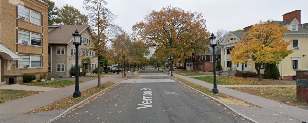 Vernon Street (formerly Zachary Lane) runs east-west through Trinity's north campus and connects Summit Street and Broad street. The road is home to fraternity and sorority houses, dormitories, the Smith House, the Cornelia Center, and various campus organizations' houses, including the Hillel House and Umoja House.